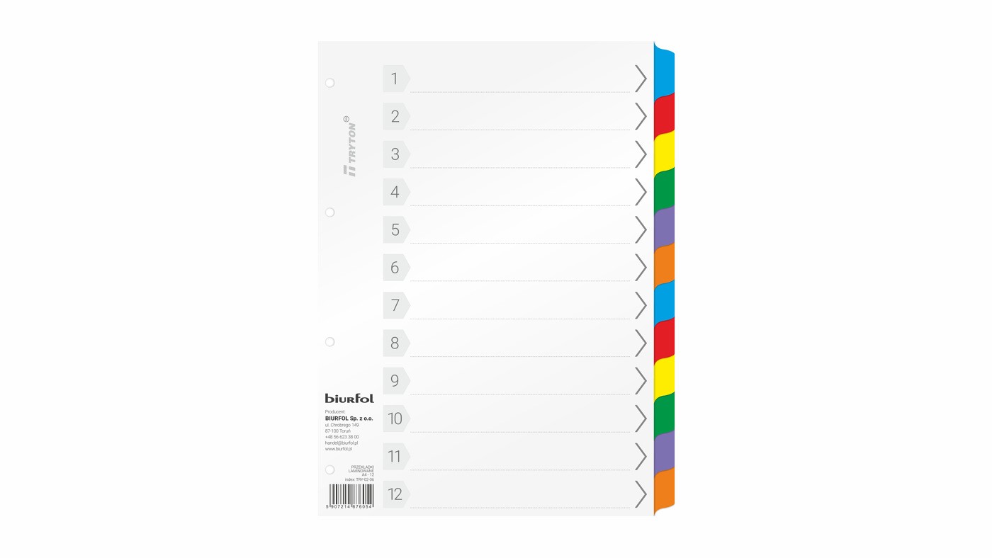 A4 karton 12k.kolorowe laminowane indeksy Mylar Tryton 1 szt. (138P0048A1)