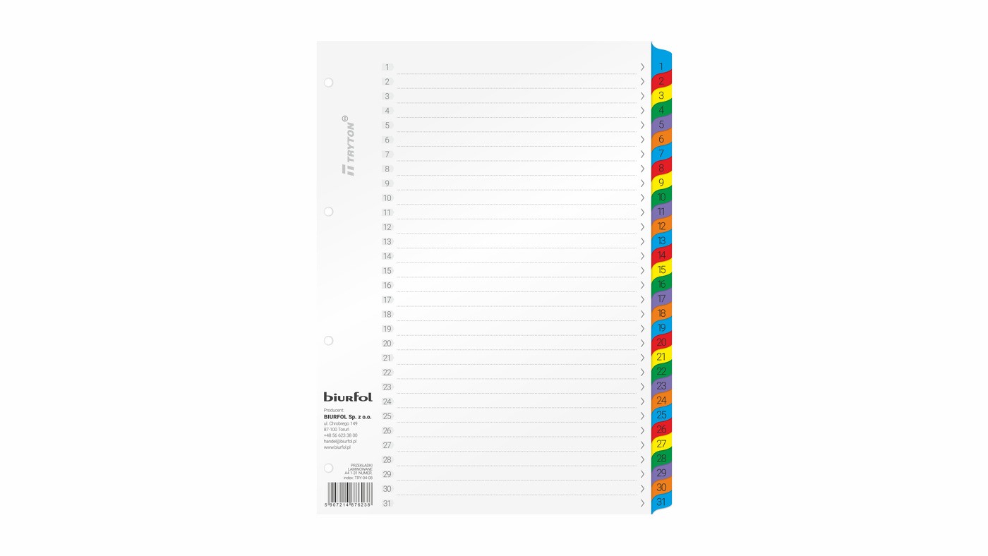 A4 karton numeryczne 1-31 kolorowe laminowane indeksy Mylar Tryton 1 szt. (138P0051A1)