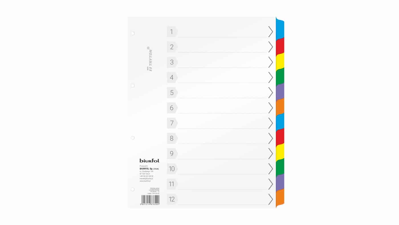 A4 karton numeryczne 1-20 kolorowe laminowane indeksy Mylar Tryton 1 szt. (138P0050A1)
