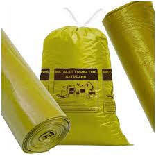 Mocne żółte worki na śmieci 120L z taśmą do plastiku, 10 sztuk