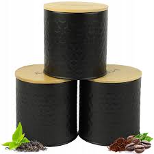 Pojemniki kuchenne stalowe z bambusową pokrywą na herbatę, kawę i cukier