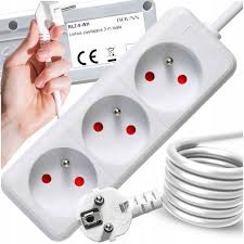 Przedłużacz Biały z Wyłącznikiem 3m, 6 Gniazd z Uziemieniem